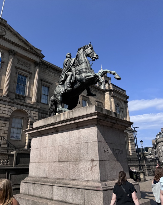 ↓在Balmoral Hotel對面處,看到這座「威靈頓紀念碑Monument to Wellington」。威靈頓最讓人印象深刻的事蹟,是1815年在他的指揮下,英國軍隊在【滑鐵盧戰役】中打敗了拿破崙、戰勝了法國軍隊。