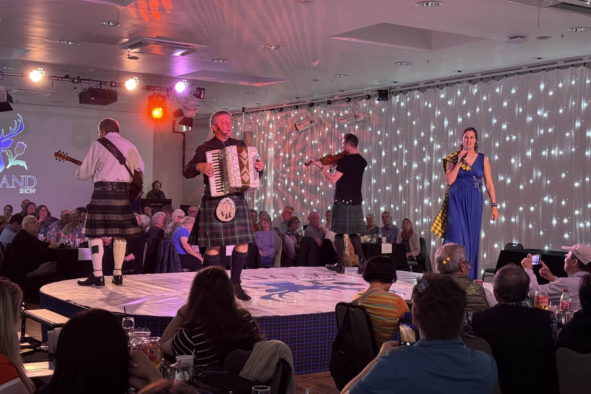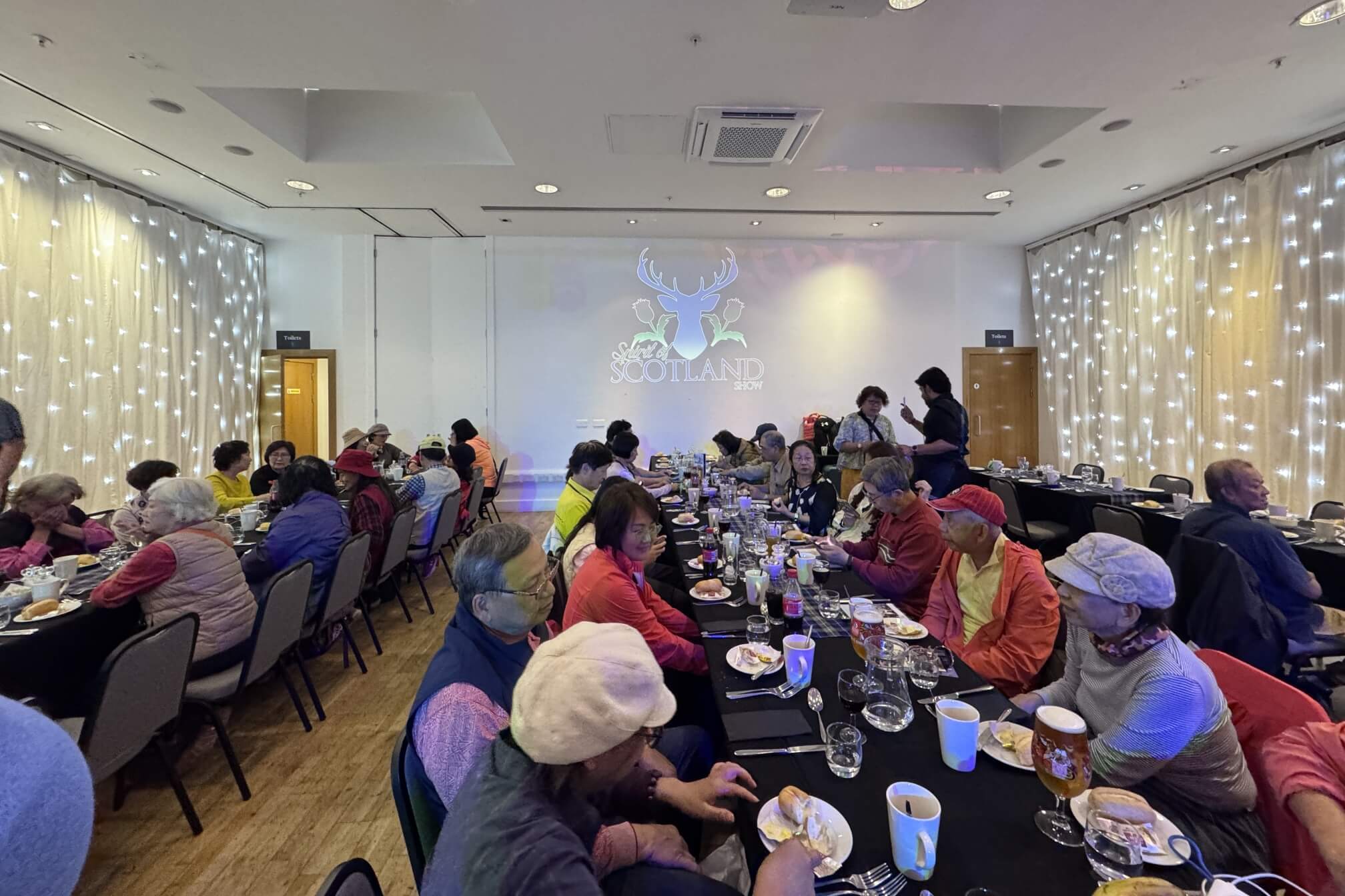 ↓今晚要欣賞『蘇格蘭之夜』-傳統的蘇格蘭音樂暨舞蹈表演。相較於幾天前在愛爾蘭欣賞愛爾蘭音樂舞蹈時,其環境既擁擠又昏暗,這裡的環境顯然完勝。