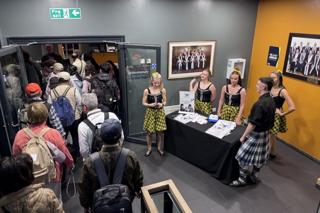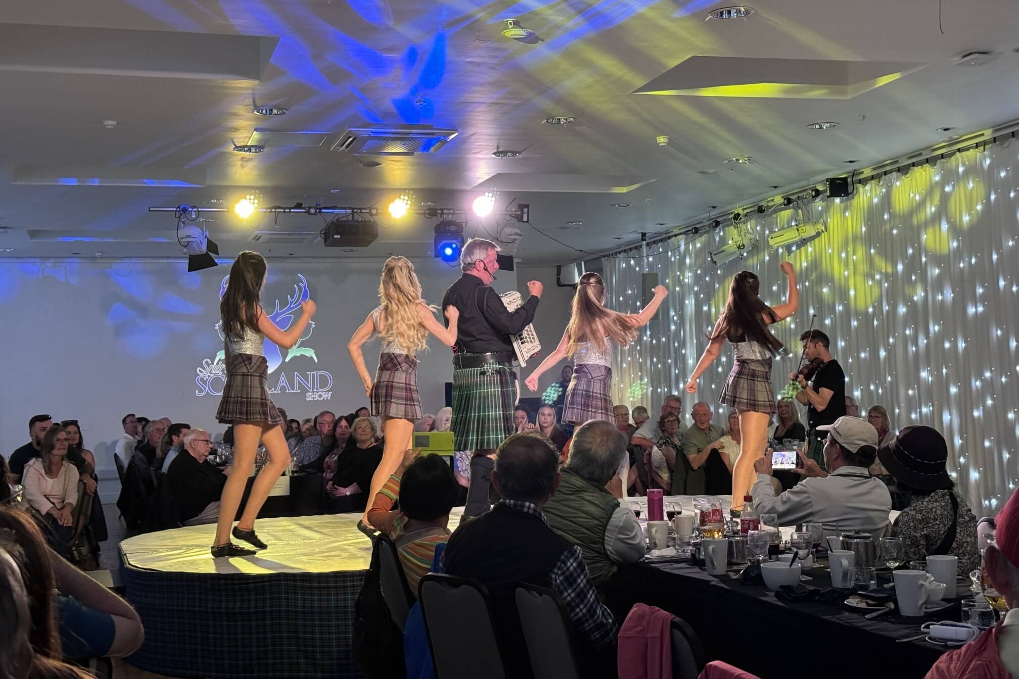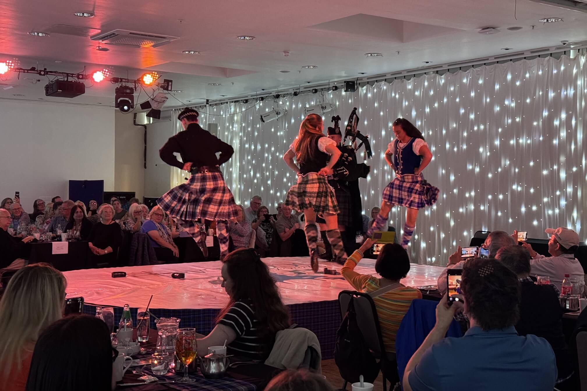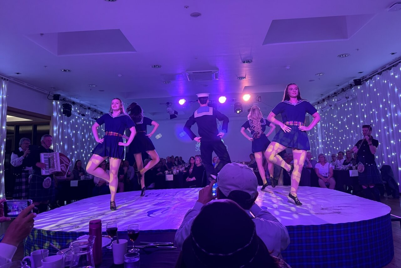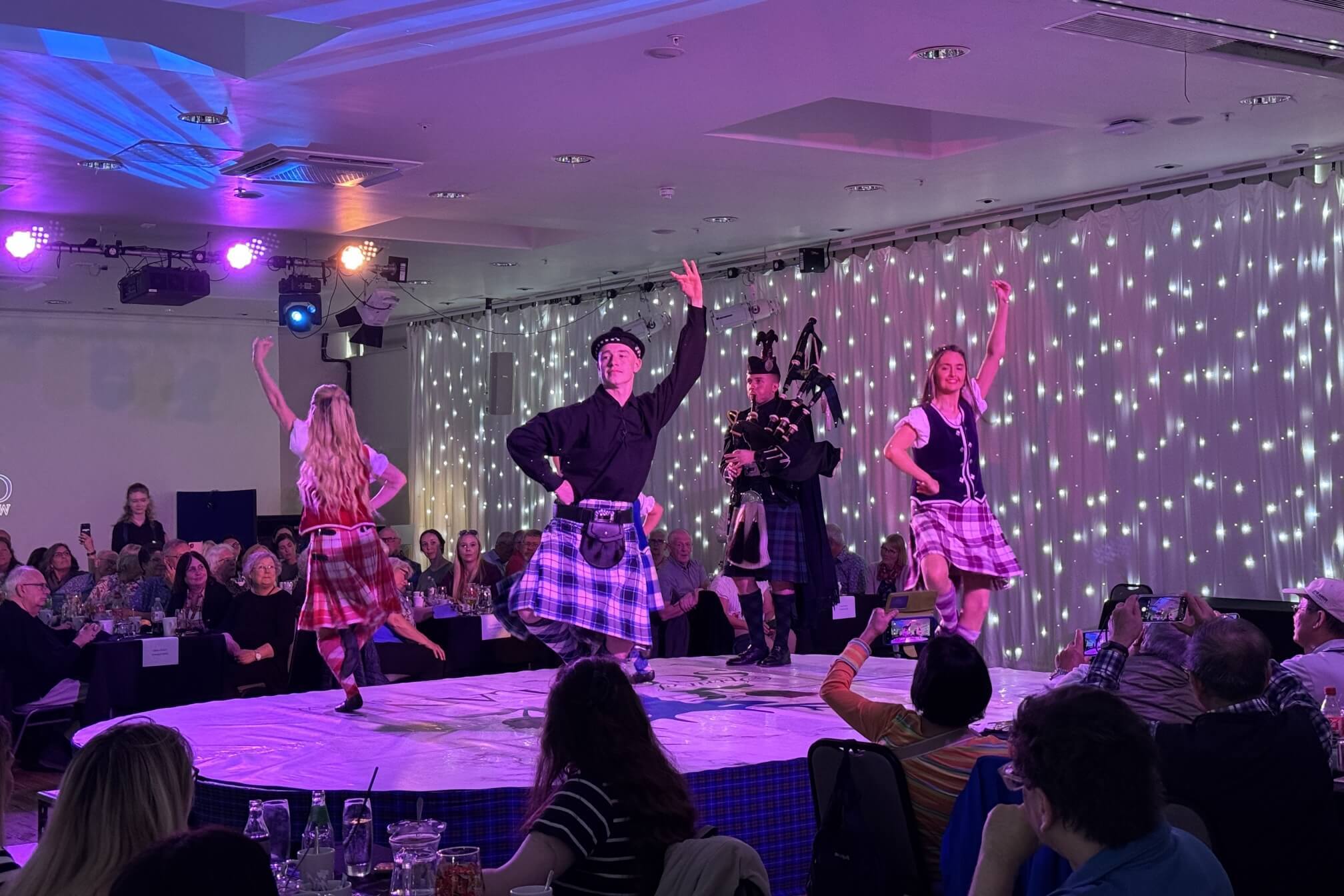 ↓舞者穿著傳統的蘇格蘭格子裙,在傳統風笛聲伴樂下,接連跳了好幾支舞。