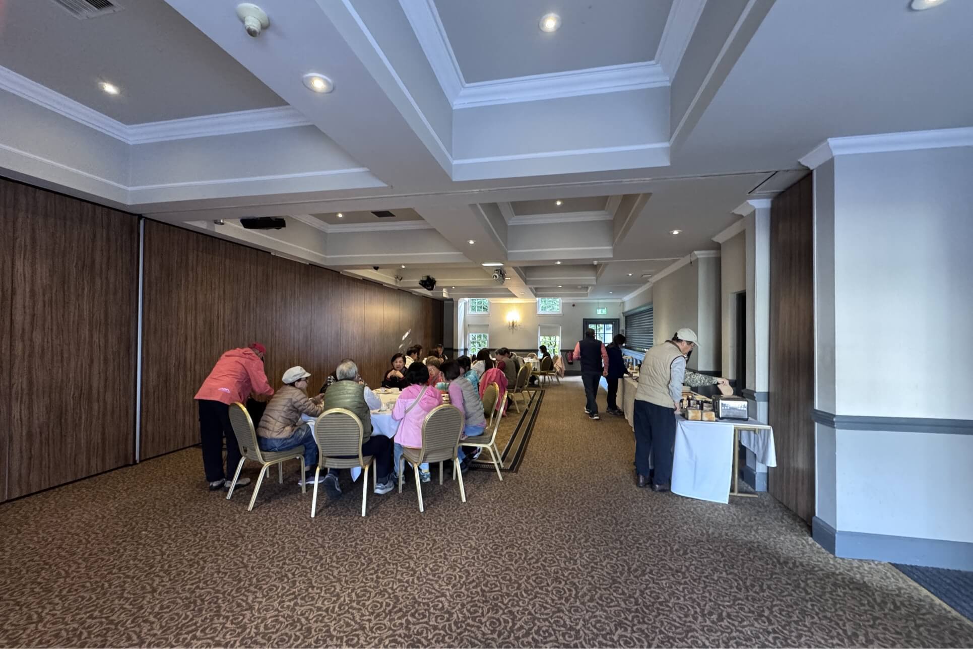 ↓一早吃早餐,旅館將我們團體安排在一個獨立的大會堂用餐(與白人分開,有歧視之嫌),且提供的餐點太過簡陋,引起團員們的不滿,領隊原欲帶領大家回原餐廳用餐又被拒,旅行社緊急決定退30英鎊給團員,才稍平息眾人的怒火。