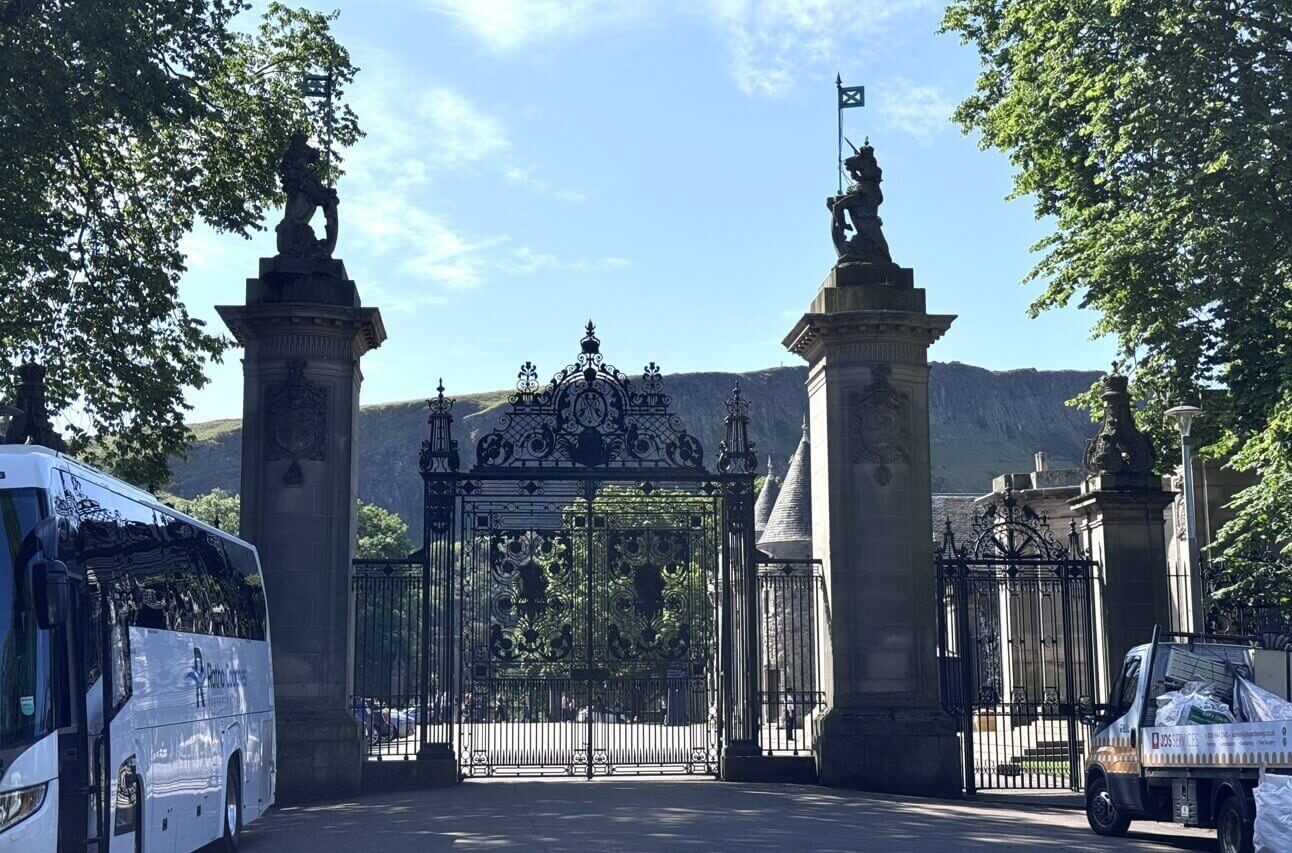 ↓出發開始今天的『愛丁堡一日遊』,首先來到「荷里路德宮(皇宮)Holyrood Palace」,這是側門。