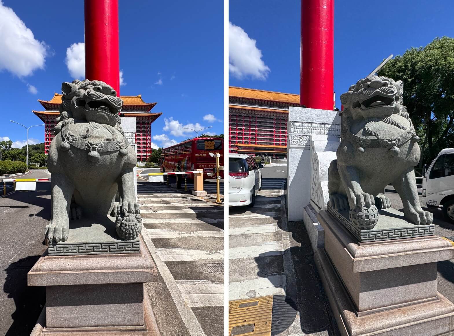↓牌樓下方,有另一對圓山大飯店後來另行仿造的石獅子。