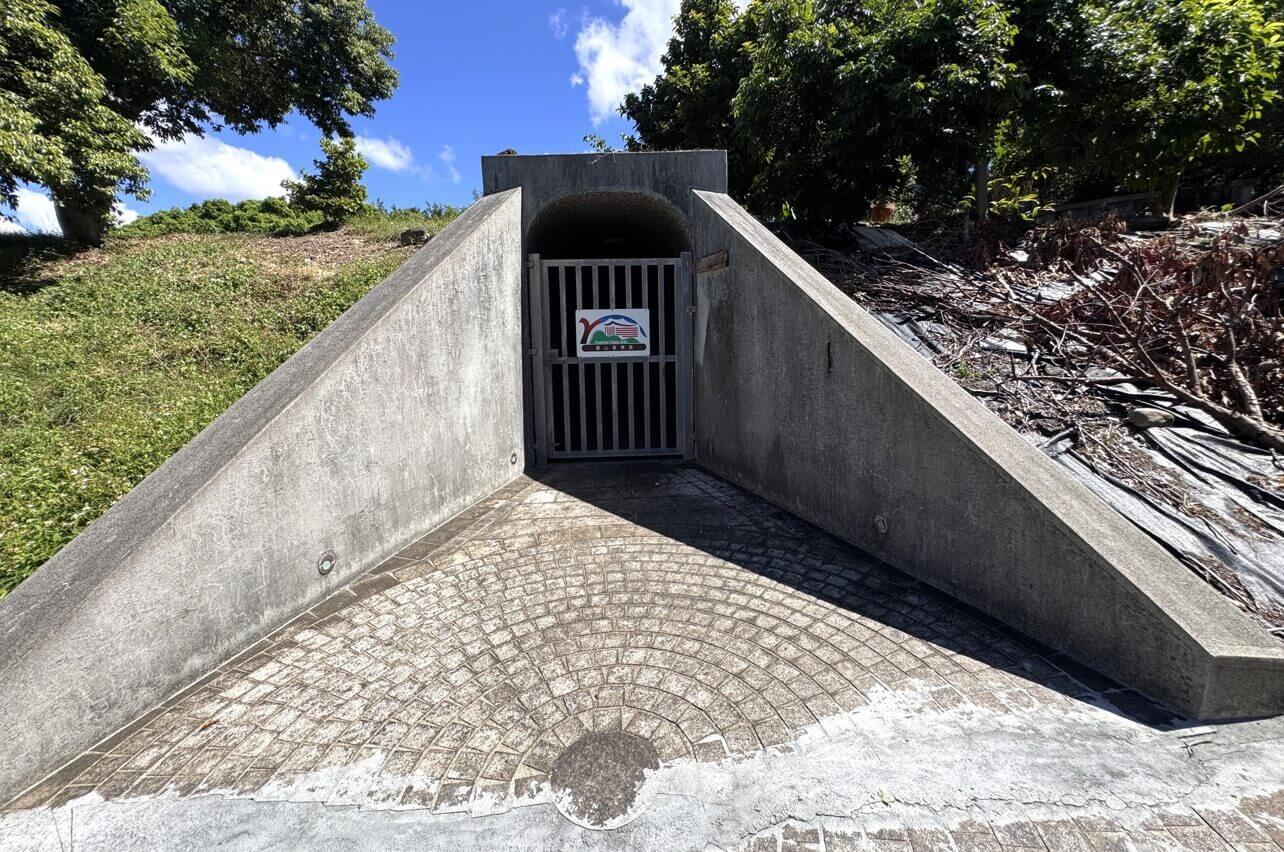 ↓繼續沿著坡道往下走,途經這座防空洞。圓山大飯店過去是蔣家的御用飯店,設有多條秘密通道,不確定這座防空洞是否為某一秘密通道的出口?