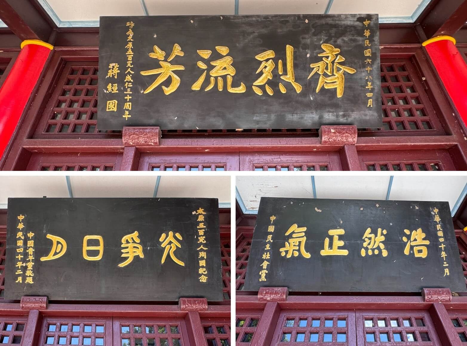 ↓回到「太原五百完人紀念堂」,可惜目前沒有開放參觀。紀念堂正面有三面匾額,其中門上這一面,是民國68年(1979年)時任總統的蔣經國所頒。