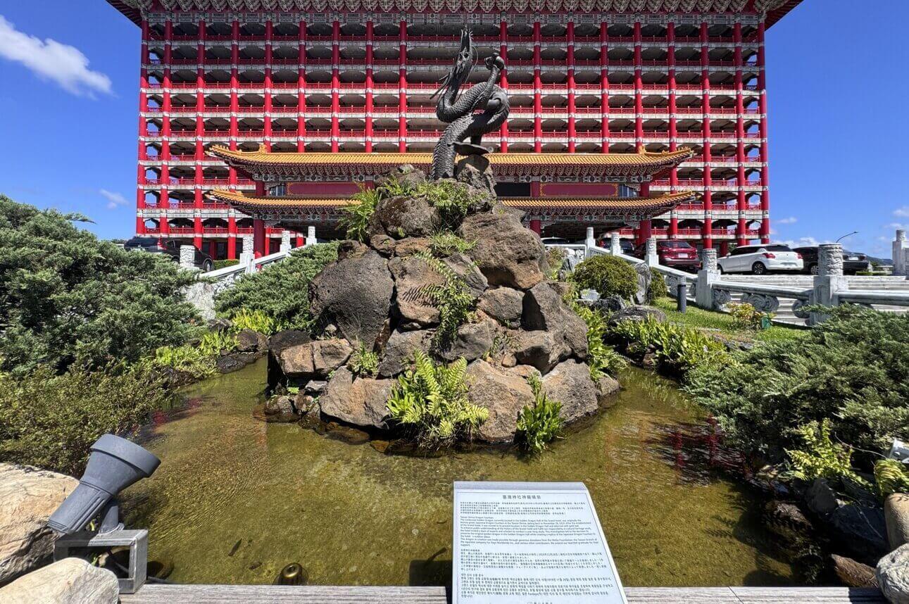 ↓此百年神龍有龍珠及長龍鬚,頭部角度向上仰視,神態彷彿一飛衝天,栩栩如生,過去威權時代,還曾是國運的象徵。「百年金龍」除了成為飯店的標誌外,也見證了圓山由神社,蛻變成台灣重要歷史地標的傳奇歷程。