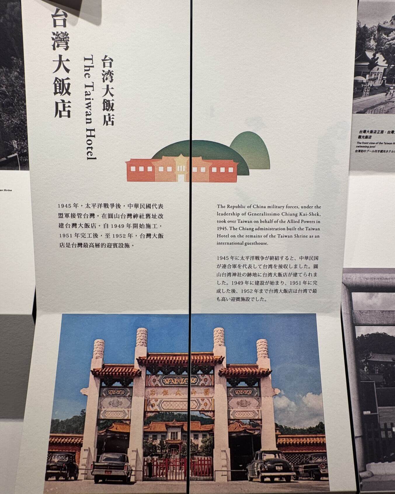 ↓1945年台灣光復後,台灣神社被拆除,原址改建「台灣大飯店」,成為台灣首屈一指的飯店。