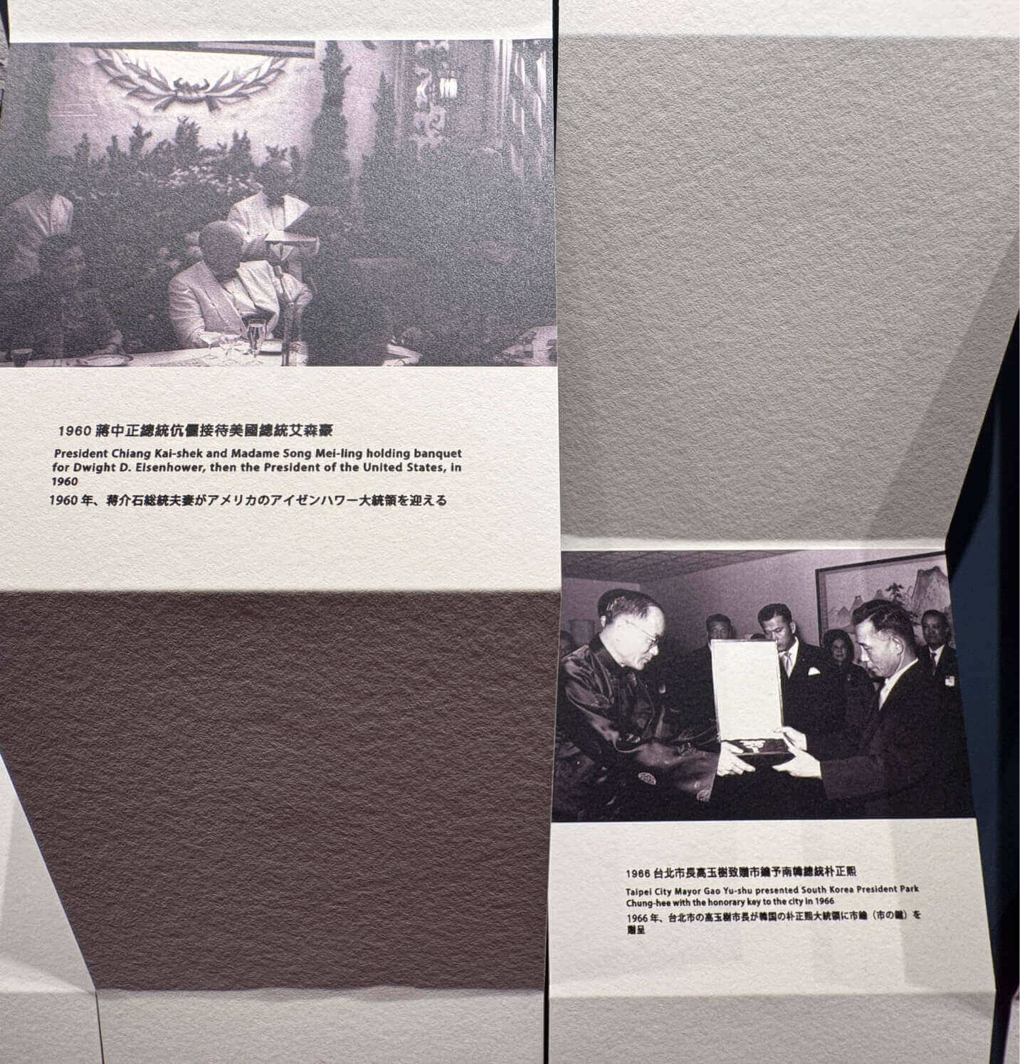 ↓1960年代,是中(中華民國)美關係最好的年代,1960年蔣中正總統於圓山大飯店與來訪的美國總統艾森豪會面;1966年,還是邦交國的南韓總統朴正熙來訪。