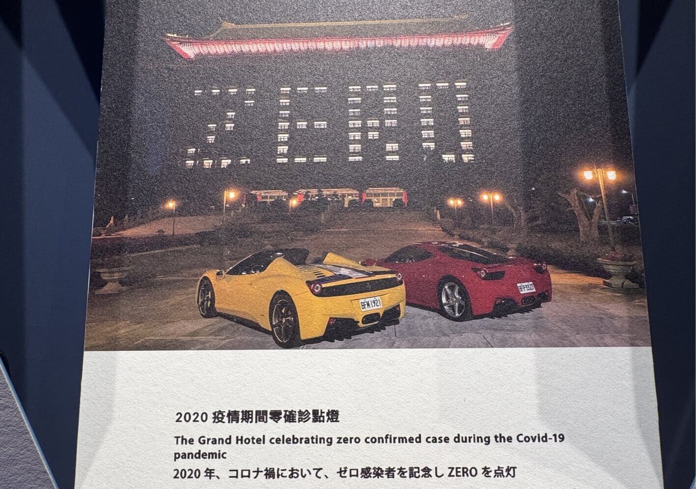 ↓2020年,全球新冠疫情嚴重,而台灣由於邊控管制完善及人民防疫意識高,曾維持好長一段時間的『零確診』,當時,圓山大飯店於外牆持續打出大大的『ZERO』字樣,相當搶眼。