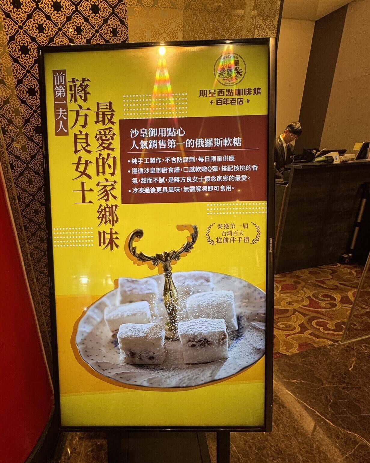 ↓圓山大飯店過去的特殊角色,飯店內的廚師也幾乎都是御用的廚師,這間小舖,就有販售當年第一夫人蔣方良女士最愛的家鄉味-俄羅斯軟糖。