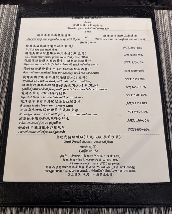 ↓平日午餐的餐單,每人需要單點一項主餐,附湯及咖啡、茶。