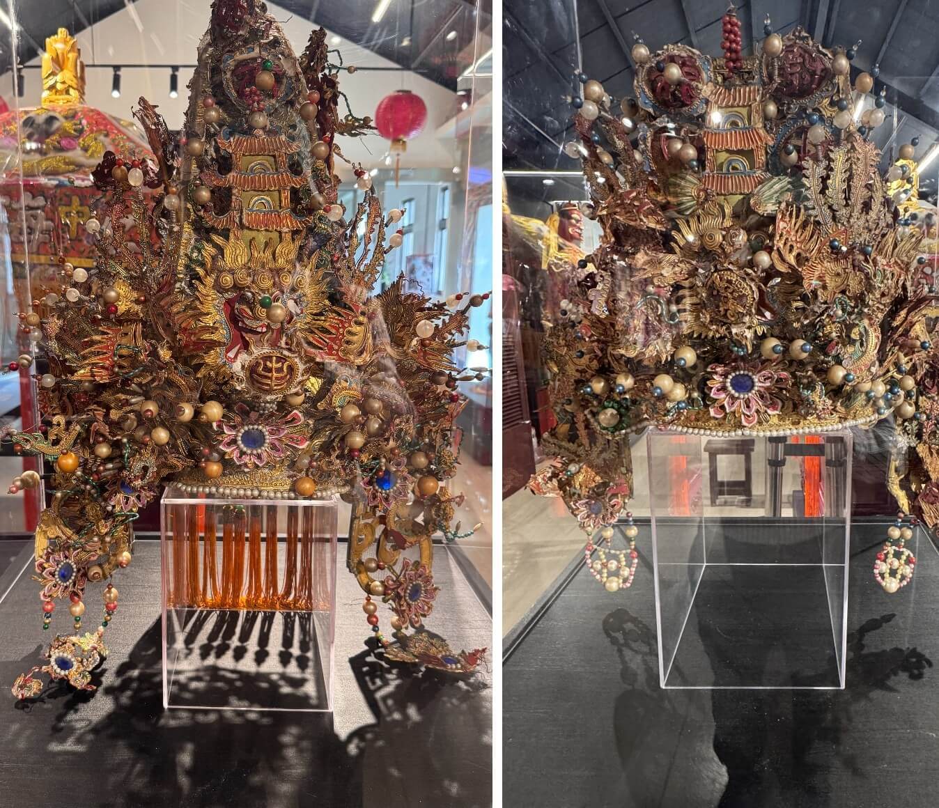 ↓【七爺】與【八爺】的官帽,平常不容易近身觀察,今日得見,頗覺神奇,也深嘆官帽之複雜度。