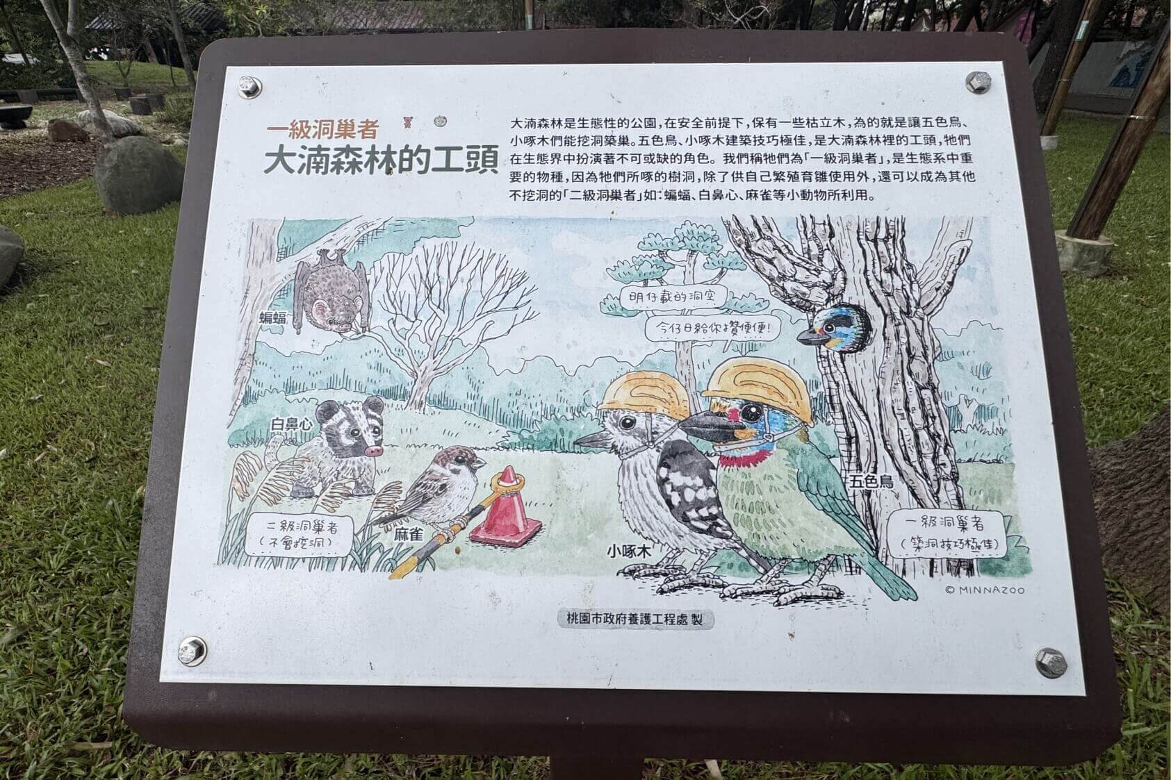 ↓大湳森林公園裡,保留了一些枯木,是為了要讓五色鳥、啄木鳥等鳥類挖洞築巢用的,牠們像是公園裡的工頭,所挖的洞,也可供蝙蝠、白鼻心、麻雀等小動物使用。