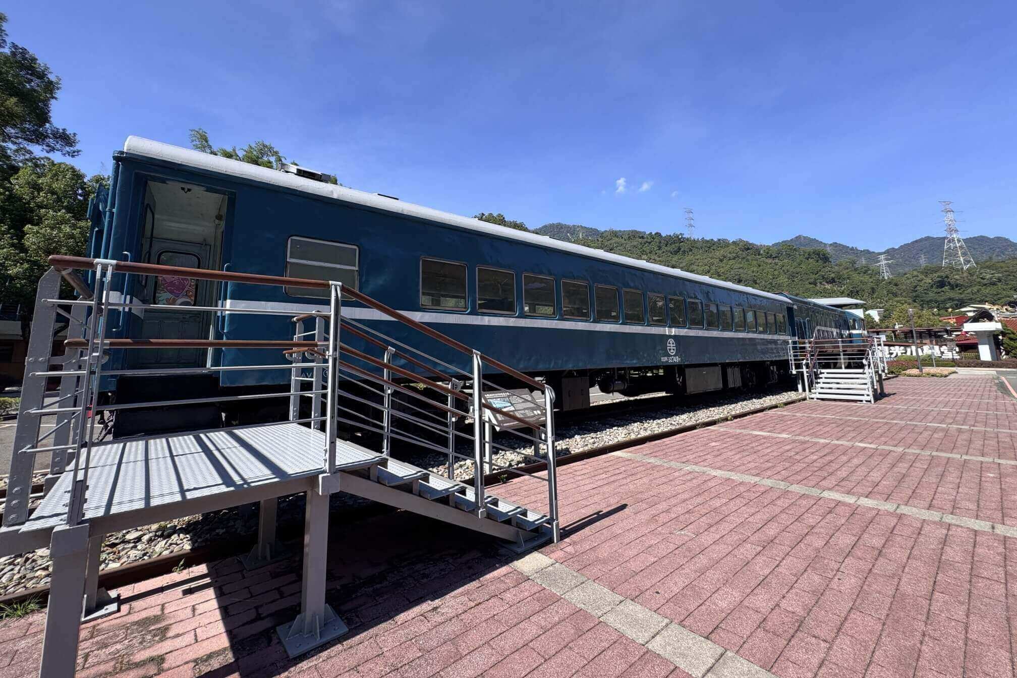 ↓常與柴油機車頭搭配的,就是這款藍皮普快車的車廂,可以登上車廂參觀。