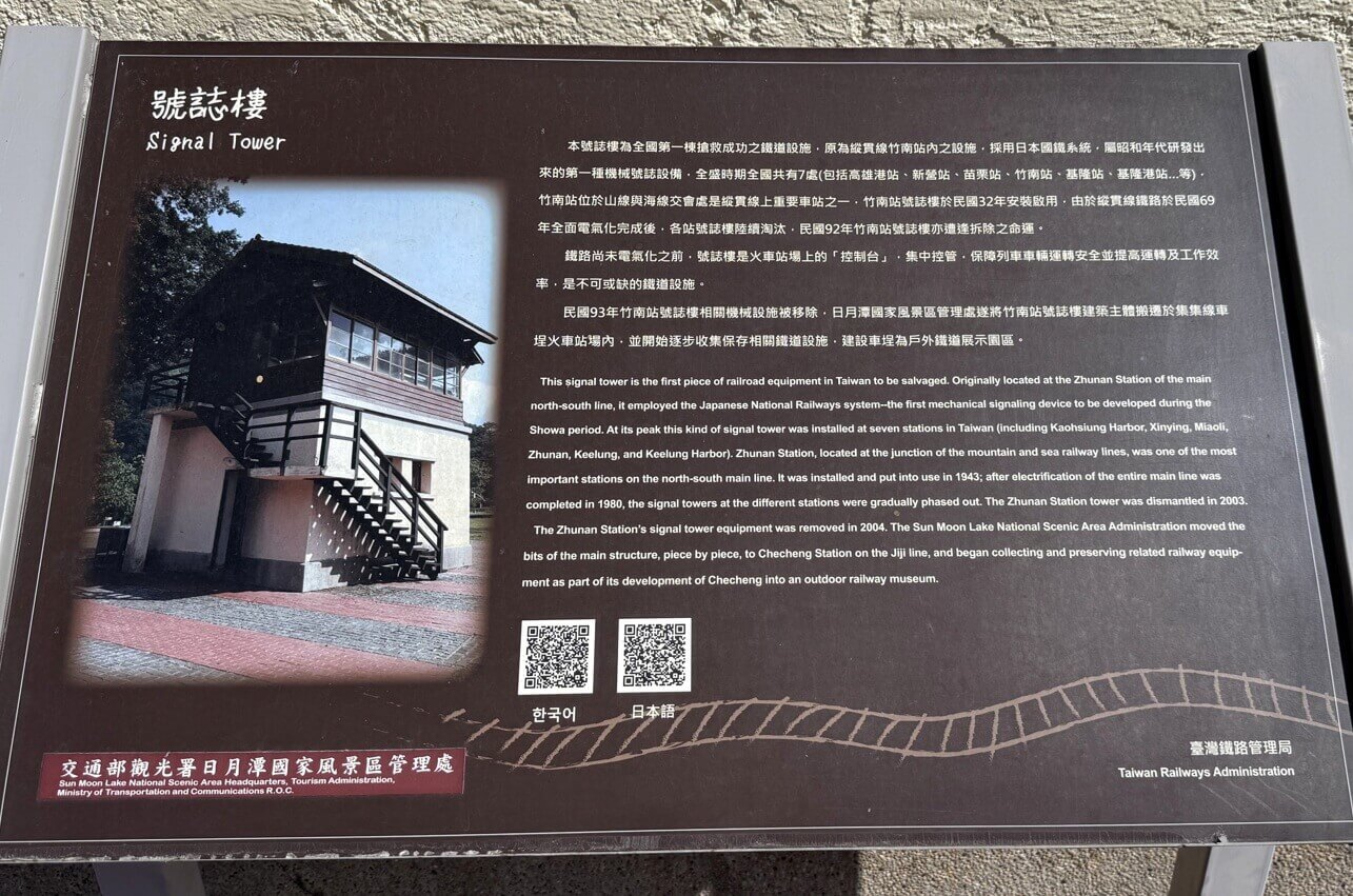↓極盛時期,全國共有七座號誌樓,竹南站是其中一站。後來因為鐵路電氣化,竹南站的號誌樓於民國93年(2004年)被拆除,隨後遷至車埕站保存。