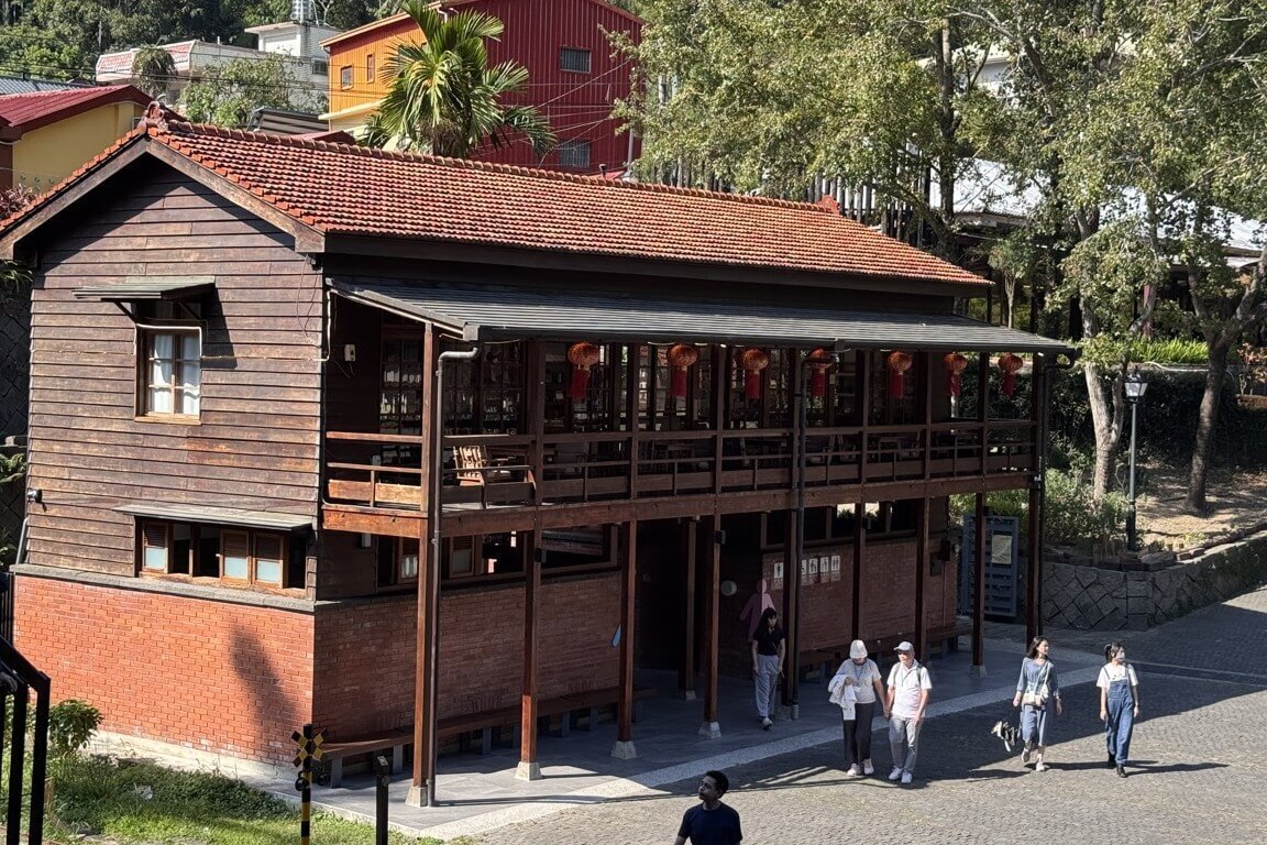 ↓池邊的這棟建築,與車站一樣,下半段紅磚牆、上半段木造屋的結構,是振昌木業的原址。