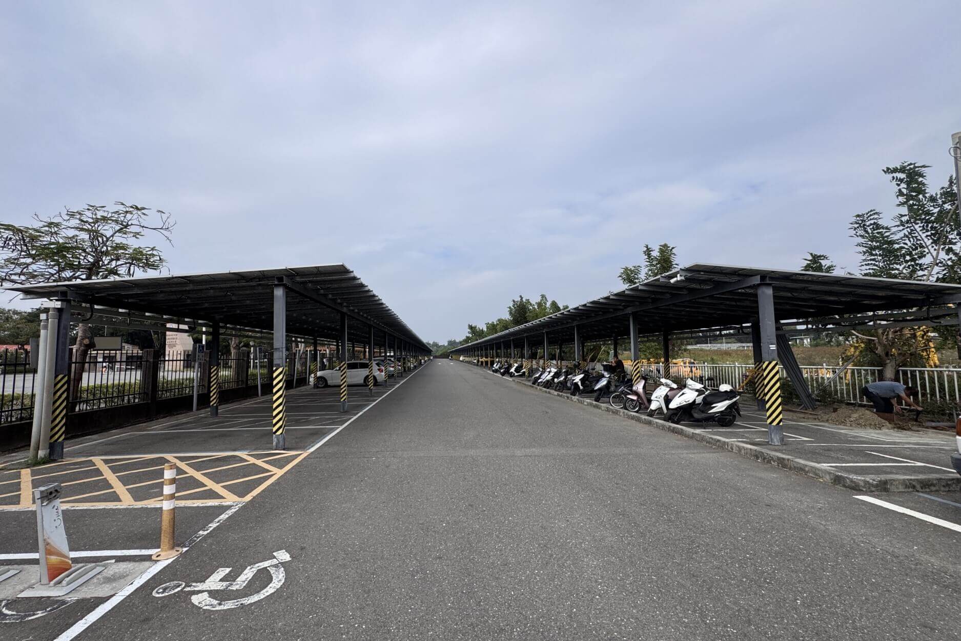 ↓有一免費的停車場,約可停5~60輛車,頭頂上是光電板。