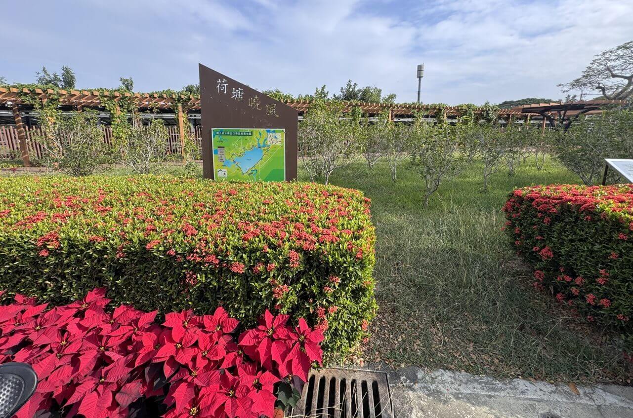↓大門右側有一片花園,還有阿公店水庫的第一景「荷塘曉風」,卻找不到荷塘,也感覺不到曉風。