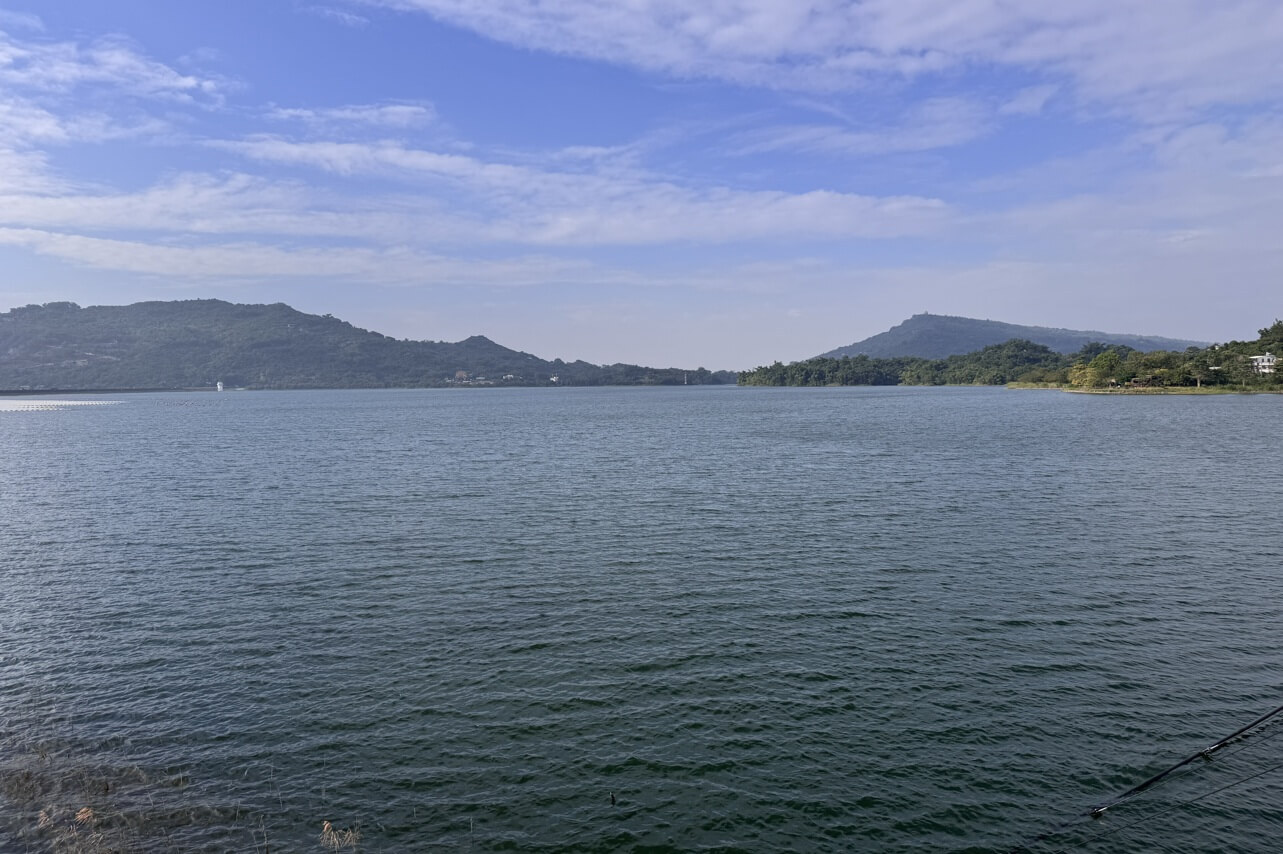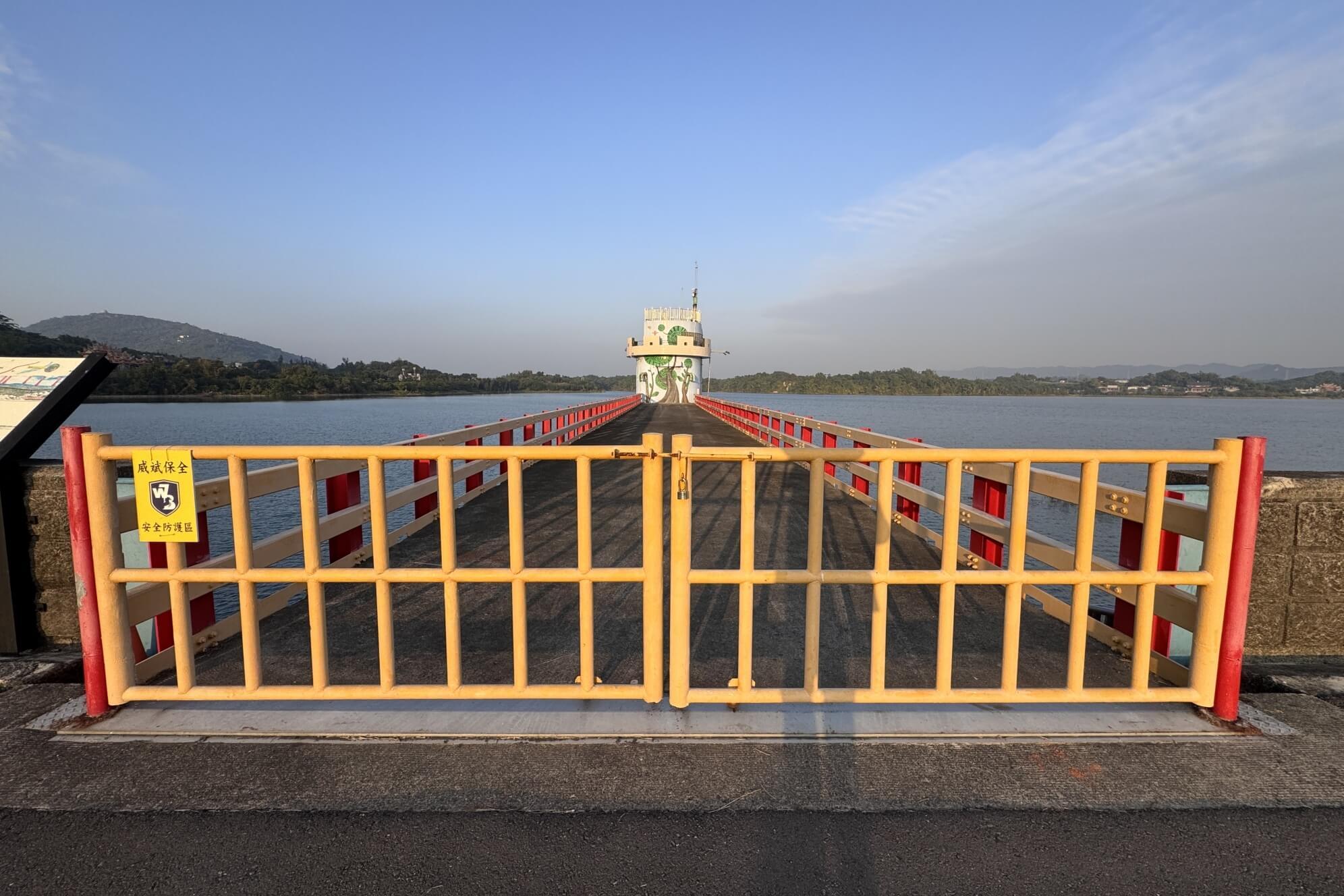 ↓煙波橋的位置,約在水庫長方形外觀的頂角,從這個角度看水庫,對岸在遙遠的地方,感覺水庫更寬廣,就來欣賞水庫美景吧。