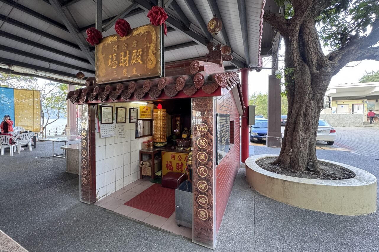 ↓休息平台旁的「福財殿」,主祀【三恩主】,旁邊有高壯的土芒果樹,相信夏天會結滿土芒果,後面還有廁所。