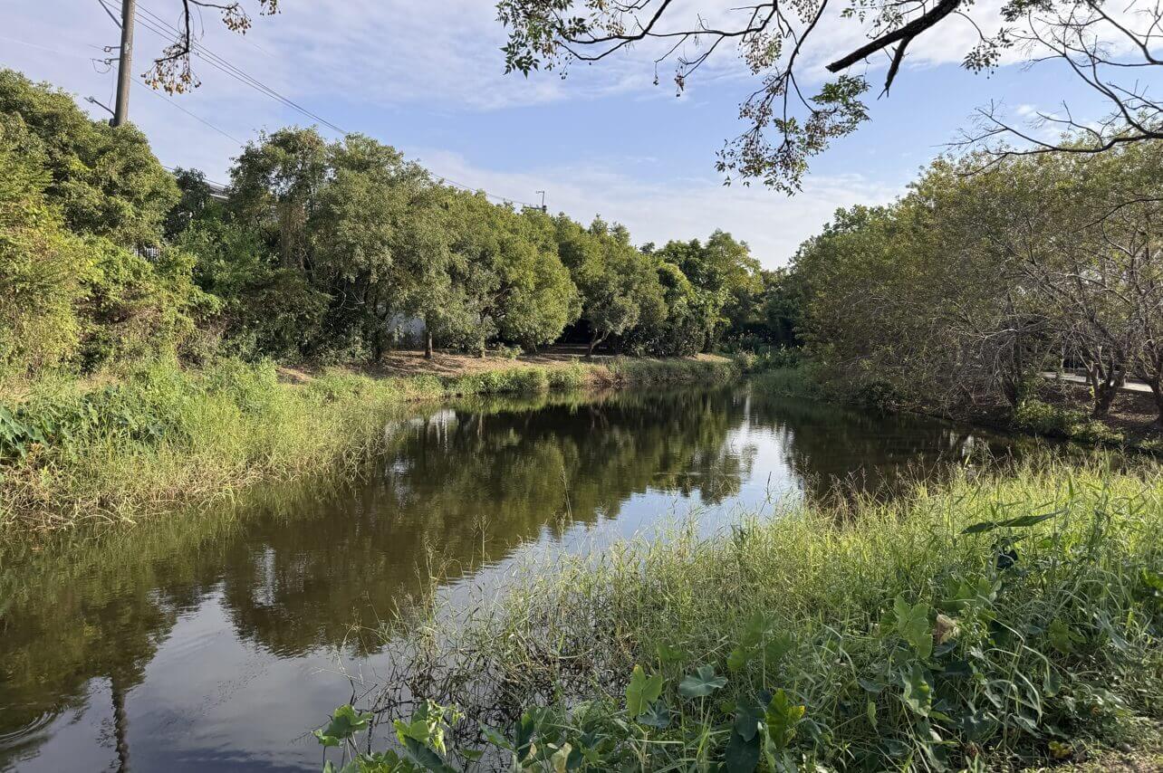 ↓這個位置,就是前面提到的「濁水溪」與「旺萊溪」的匯流處。當年日本政府視台灣為進出東南亞的門戶,因此建了「岡山空軍機場」,而為了用水,又興建阿公店水庫,惟因二戰戰敗撤出台灣,阿公店水庫未能依計畫完工。