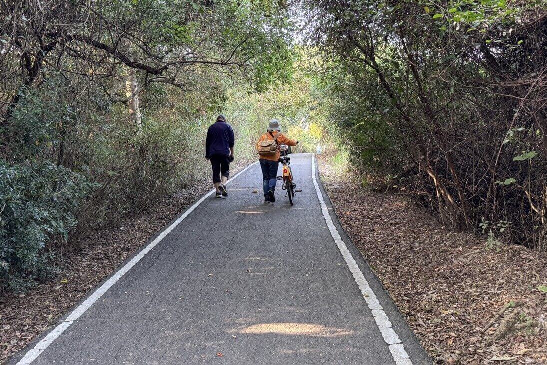 ↓環湖步道有些許起伏,碰到小爬坡,就只能牽車而行。