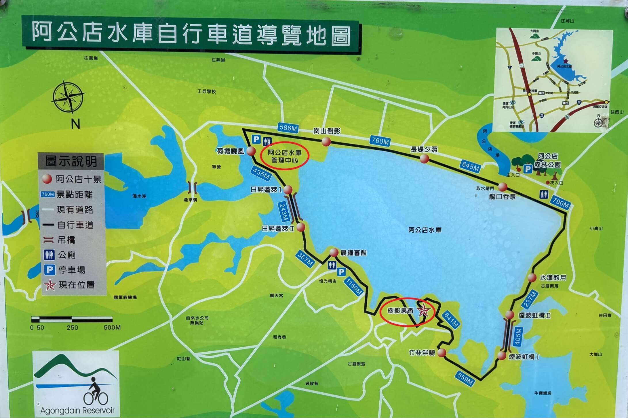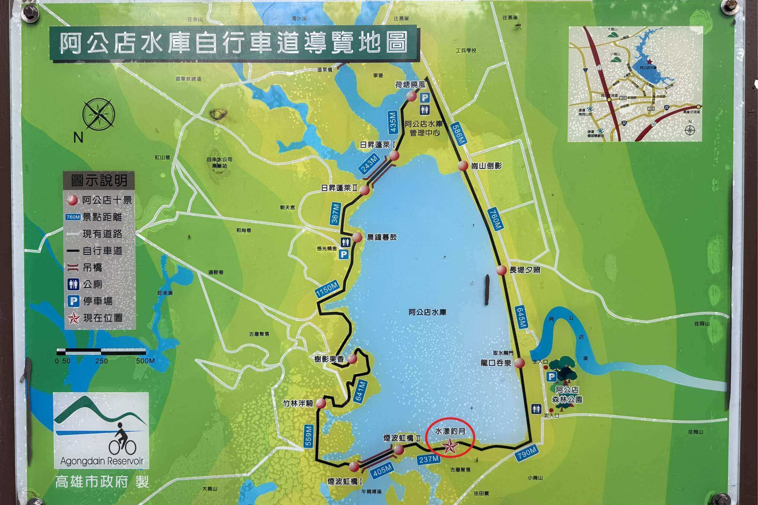 ↓我們從地圖左上角的阿公店水庫管理中心出發,來到這裡已經過了三分之一。
