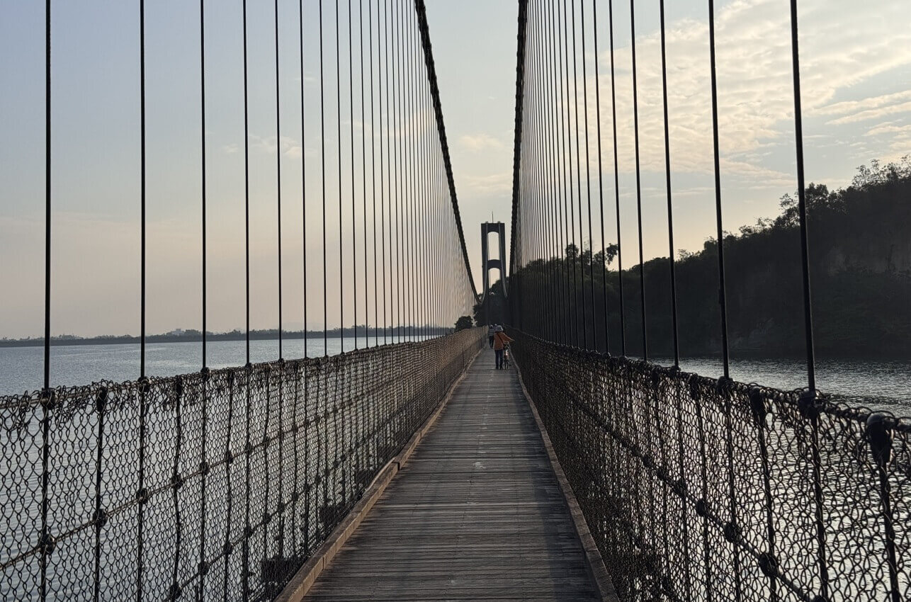 ↓太陽已經西斜,映照出一幅吊橋美景。