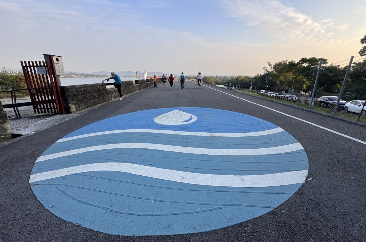 ↓我們租了Youbike,要沿著自行車道(與人行步道共道)環湖一圈,車道(步道)全長約7.6公里,加上壩堤約2.36公里,共約10公里。