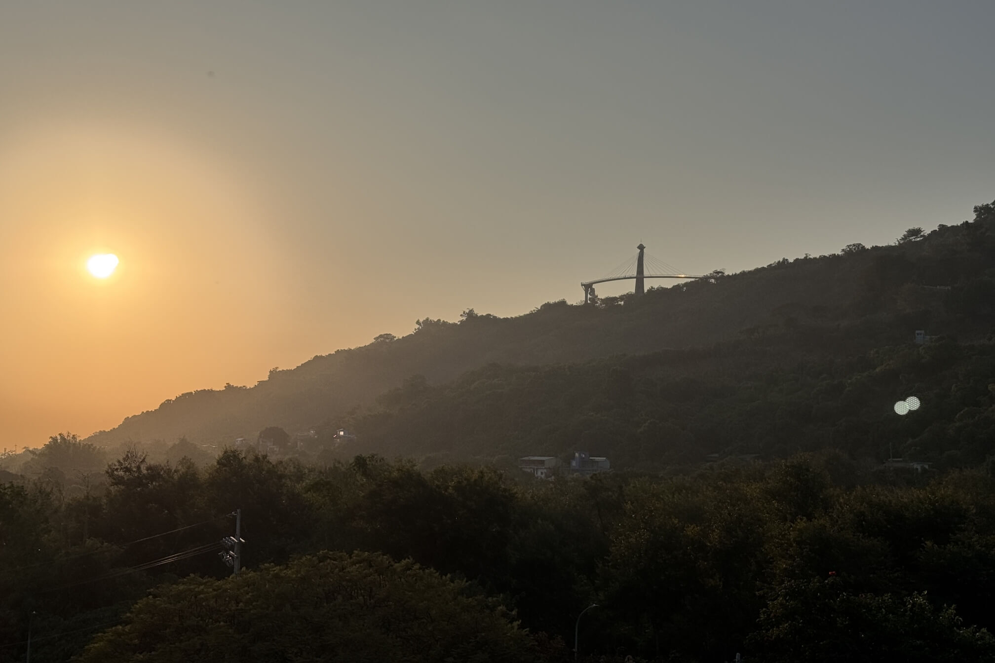 ↓日昇蓬萊吊橋後面的山,應該是「佛光山」所在的小山丘。