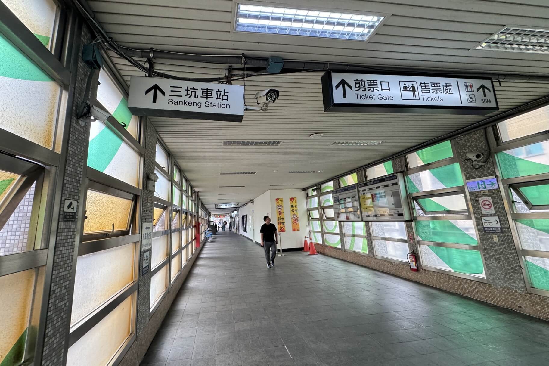 ↓從三坑車站走出來,前方是一條往市區的通道「三坑車站風雨走廊」。