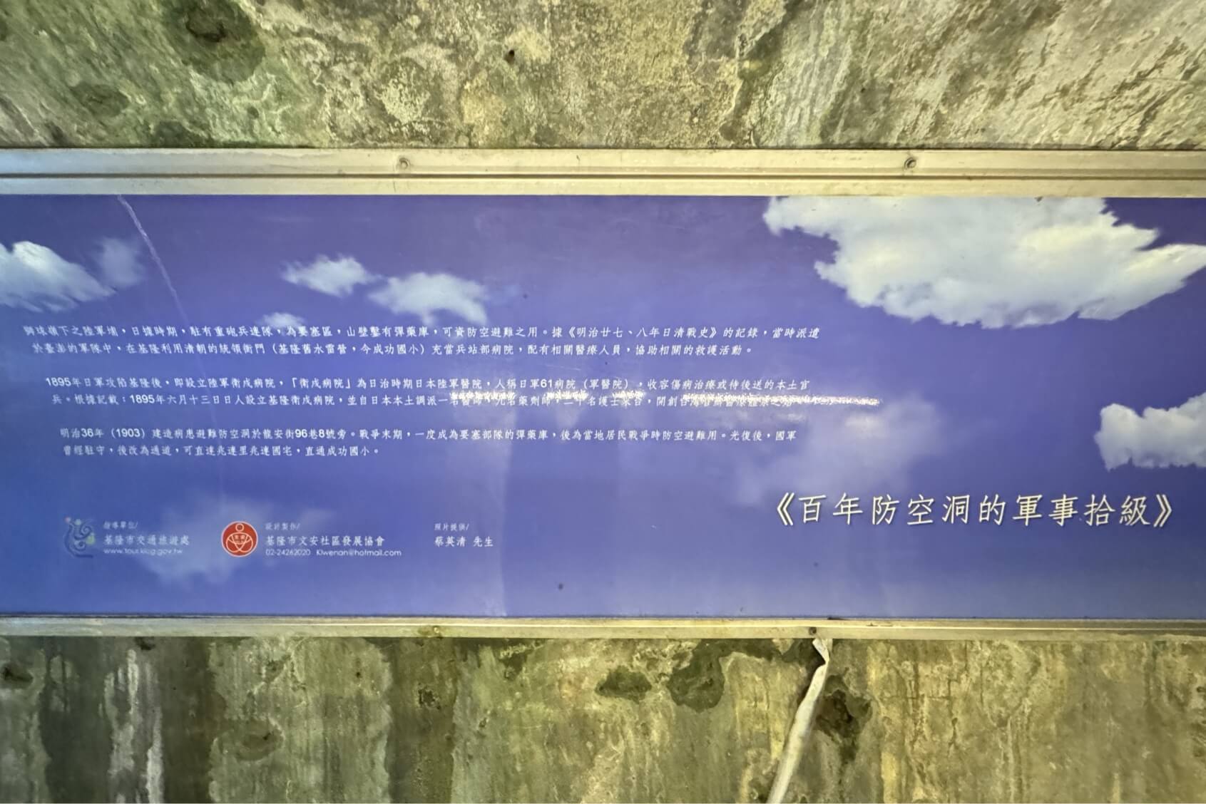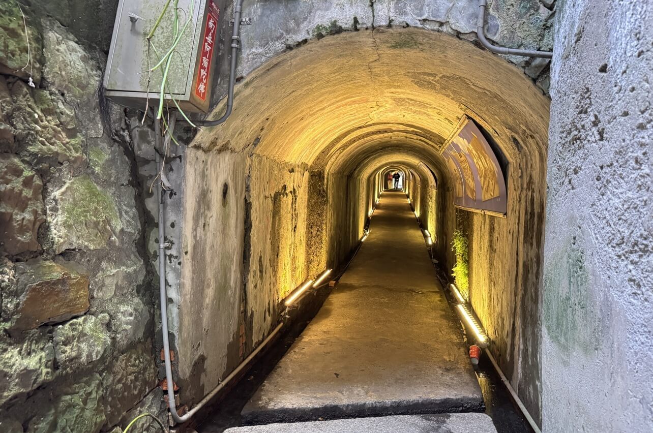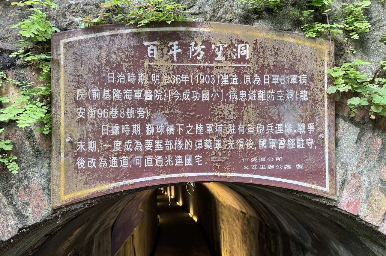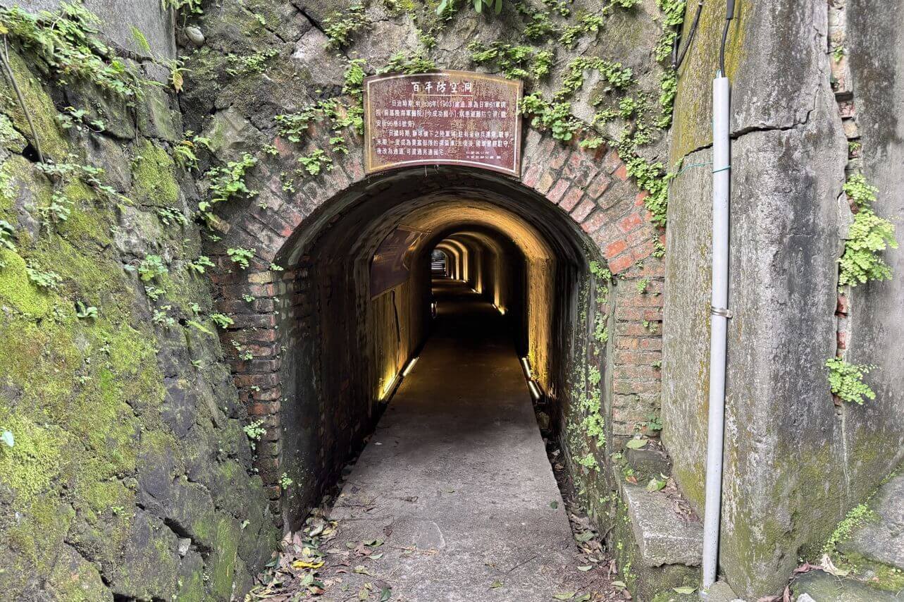 ↓這座防空洞其實也大名鼎鼎,它是建造於明治36年(1903年)的「百年防空洞」,原為日本61軍的軍醫院病患避難的防空洞。日本時代末期,一度成為日軍要塞部隊的彈藥庫。光復後,國軍還曾駐守,後來改為串連兩側的通道。