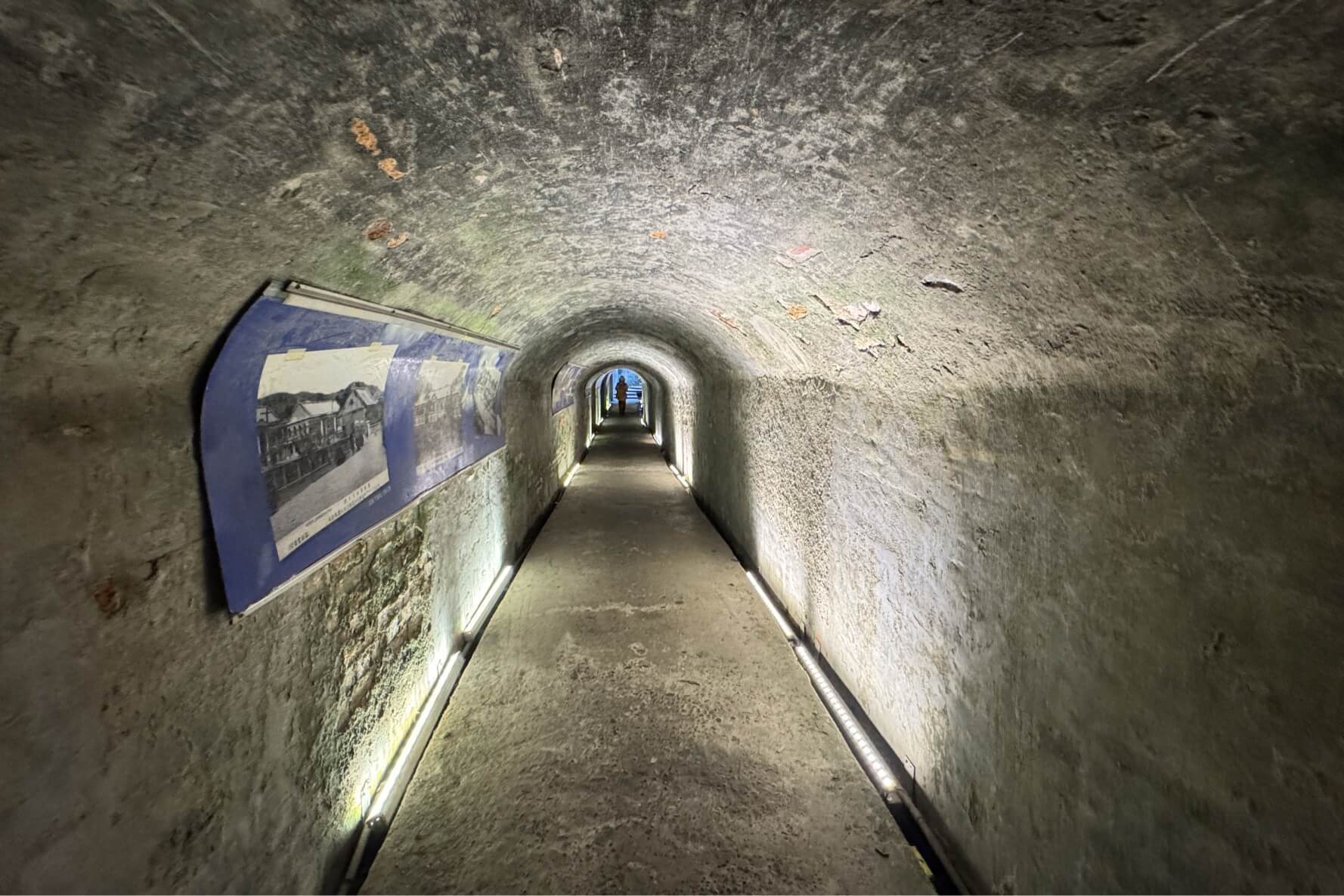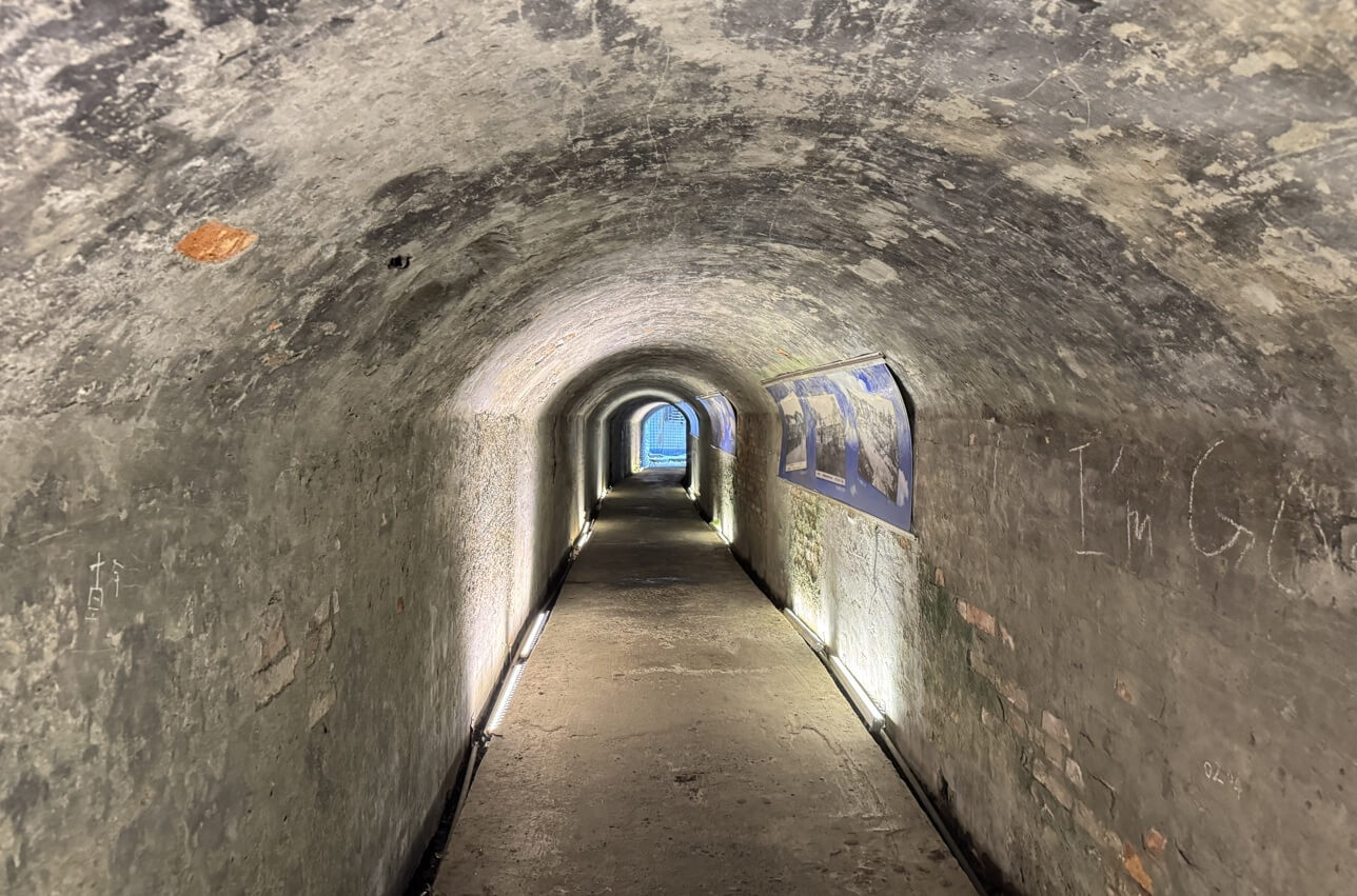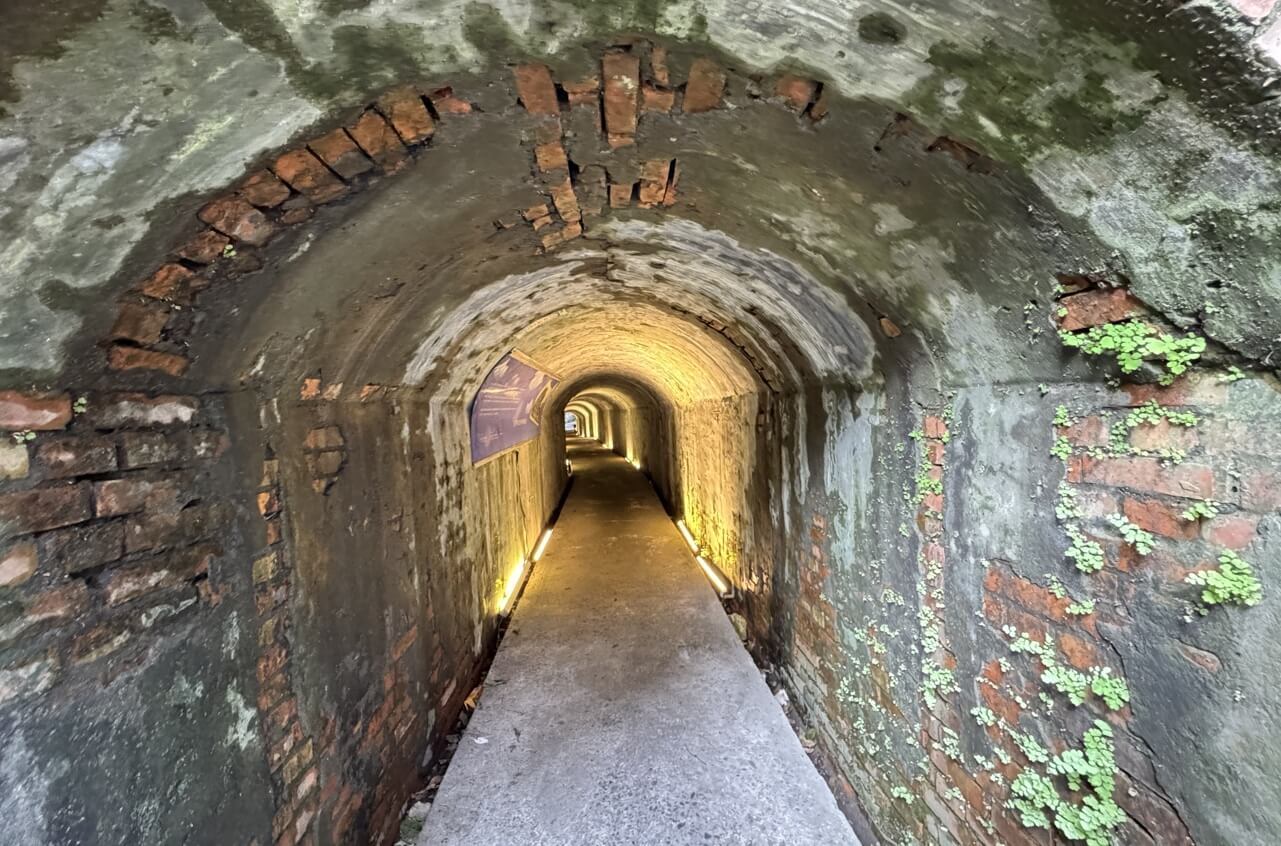 ↓這座防空洞其實也大名鼎鼎,它是建造於明治36年(1903年)的「百年防空洞」,原為日本61軍的軍醫院病患避難的防空洞。日本時代末期,一度成為日軍要塞部隊的彈藥庫。光復後,國軍還曾駐守,後來改為串連兩側的通道。