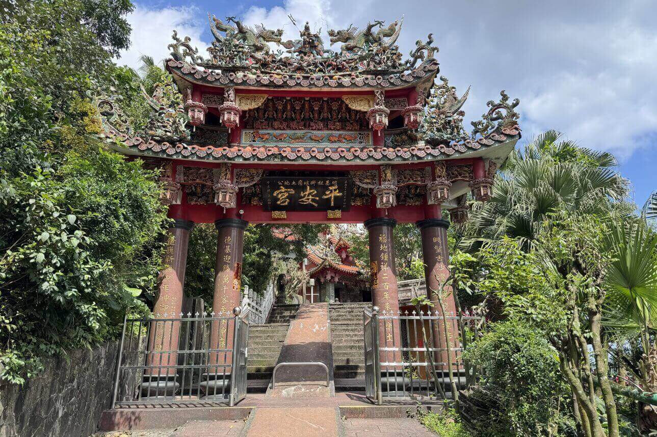 ↓「獅球嶺平安宮」創立於清乾隆、嘉慶年間,為基隆創建歷史最久遠的開基土地公廟。當時獅球嶺是基隆往返台北的必經要道,平安宮便位於此交通要塞上,香火鼎盛,來往商旅行經至此,多向土地公許願,祈求保佑行旅平安。