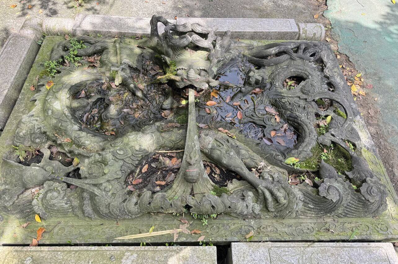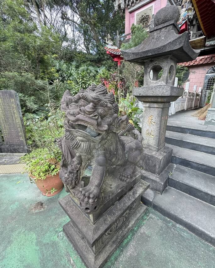 ↓廟前還有另一對石獅,也有石燈籠。推斷沿途看到的石燈籠,應該是與平安宮的石燈籠屬於同一批。
