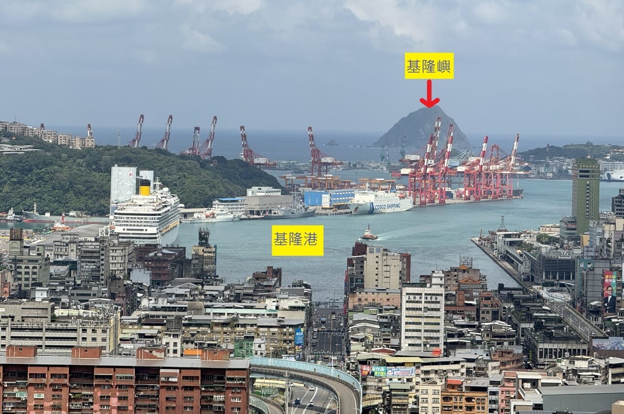 ↓正前方的「基隆港」,有郵輪停靠在岸邊;還有海上的明珠「基隆嶼」。
