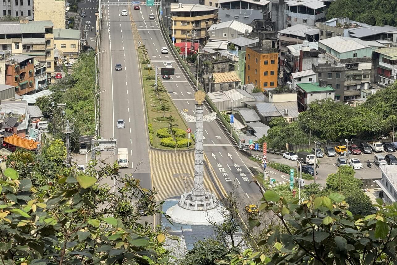↓而我們所在的「獅球嶺觀景台」,正好處於「國1高速公路起點」的正上方,隧道口的「華表」石柱,就在我們腳底下,真是一座令人驚奇的觀景台。