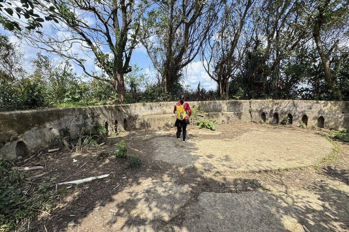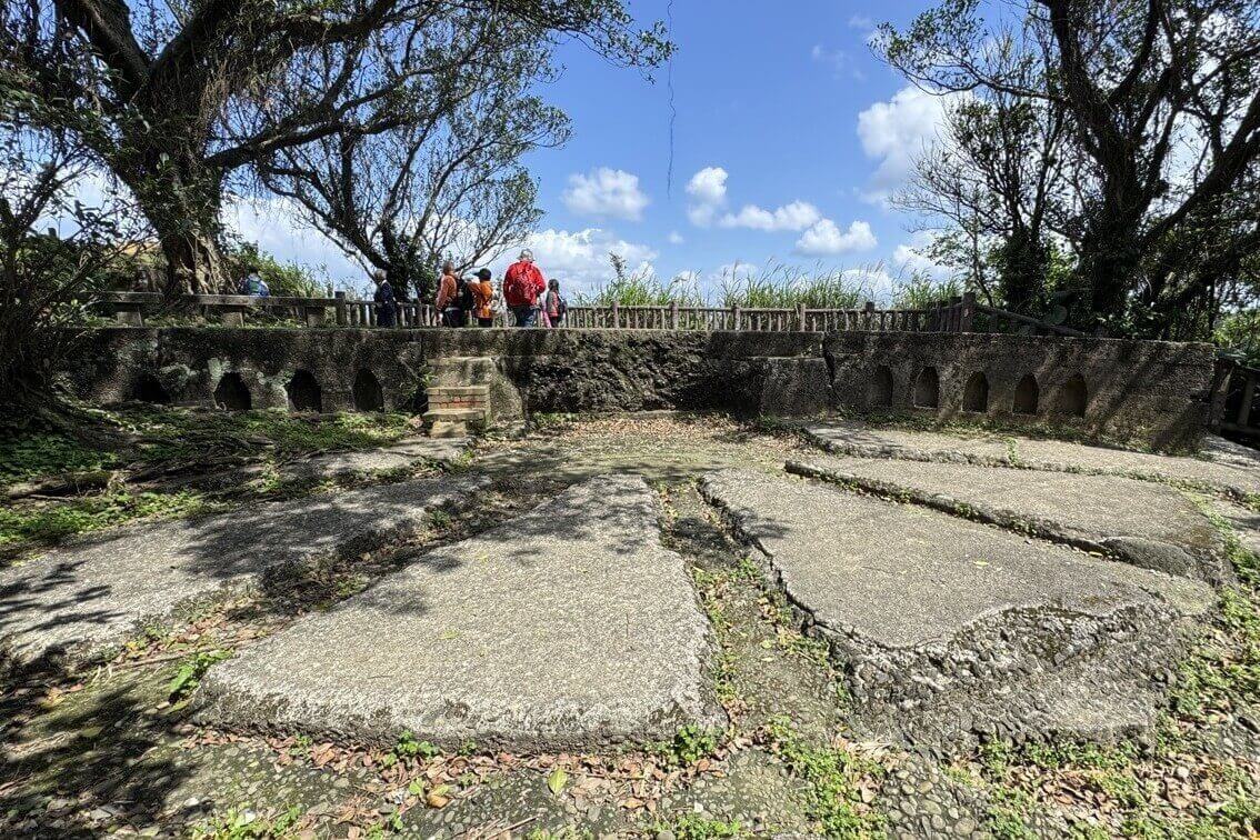 ↓約不到10分鐘,即達「獅球嶺西砲台」,砲座的扇形放射狀溝槽,還算清晰可見。