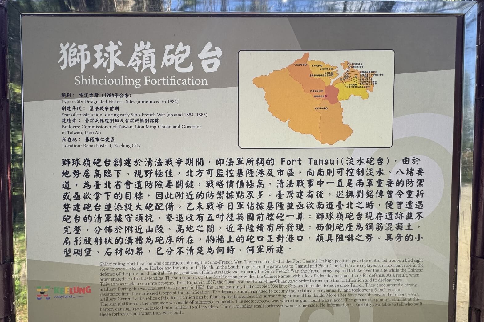 ↓獅球嶺砲台創建於「中法(清法)戰爭」期間,地勢居高臨下,視野極佳,戰略價值極高,是當初法國急欲拿下的據點。1896年的【乙未戰爭】,日軍自基隆港進入,也曾遭遇駐守獅球嶺砲台的清軍砲擊。