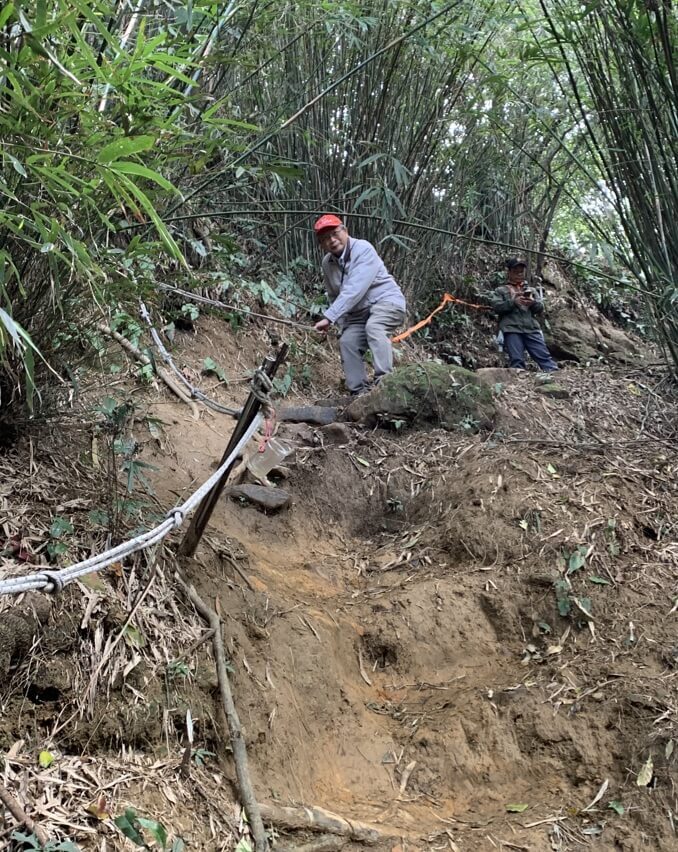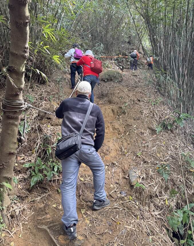 ↓原路折返,攀繩路段,下坡比上坡更難一些。