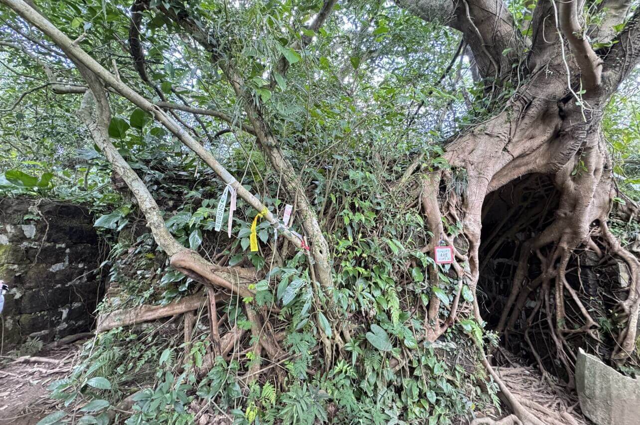 ↓獅球嶺東砲台的碉堡與榕樹盤根錯節,被戲稱為「基隆吳哥窟」;只是,未能找到砲台的遺跡,有些遺憾。