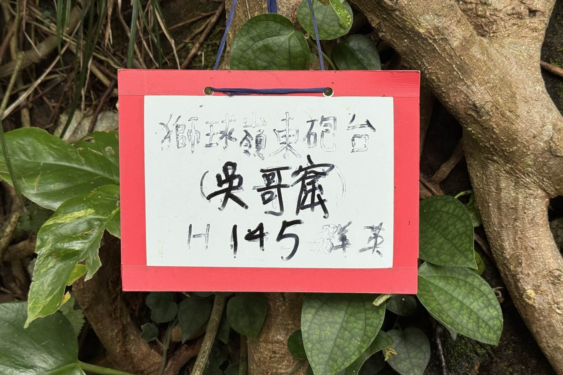 ↓從小徑下來幾公尺,便可發現「獅球嶺西砲台山」的三角點,標高105公尺。
