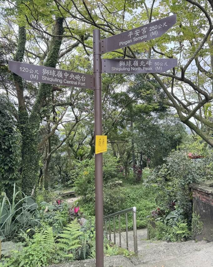 ↓繼續往前,來到另一個岔路口,往右可回到平安宮,我們這次要往左,到「獅球嶺西砲台」。