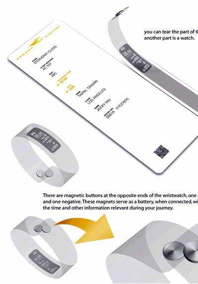 當二個磁鐵扣接合在一起,變成電池,可顯示時間及飛航資訊