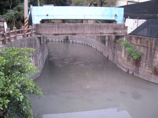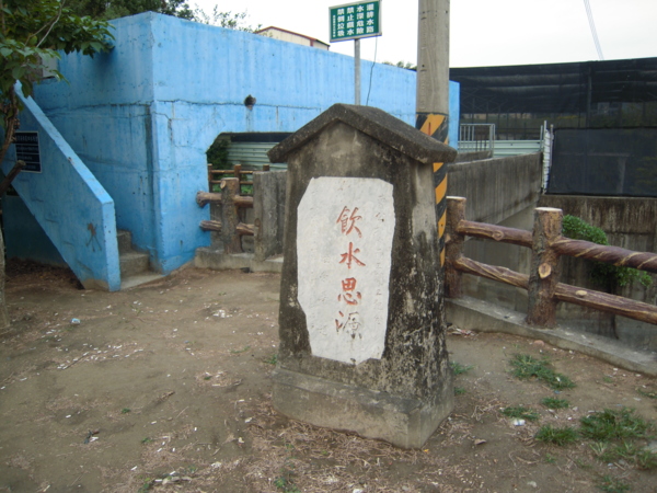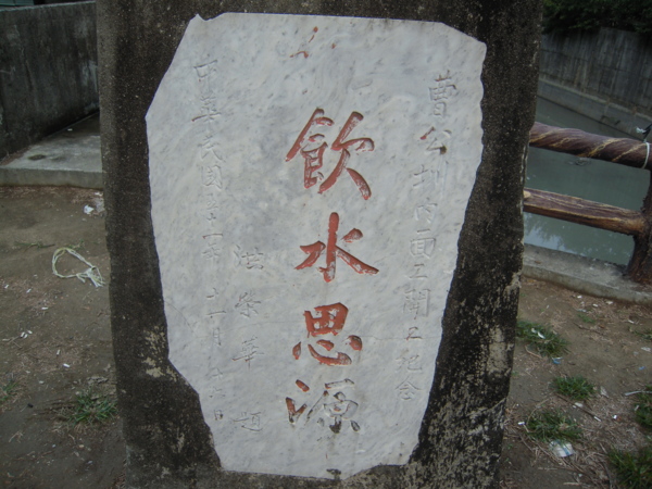 曹公圳內面開工紀念碑(又稱飲水思源碑),是民國五十一年國民政府將原有已開鑿的圳道,用水泥將其改善內面的工程措施;紀念碑後面即是六孔閘門,此門於前兩年由農田水利會以阻礙防洪措施為由將其拆除,現只剩下空門;個人覺得非常可惜。