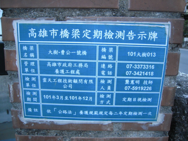 上次介紹曹公圳新舊圳頭(五口頷、三口頷)後,接著來到曹公圳上游,此處有曹公一、二號橋、飲水思源紀念碑、六孔門閘道,而在引水到出口處還有日據時期開鑿的大寮圳竣工紀念碑。