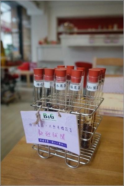 有機花茶的部分,店家提供試聞瓶,可以聞到自己喜歡的味道再點,超貼心