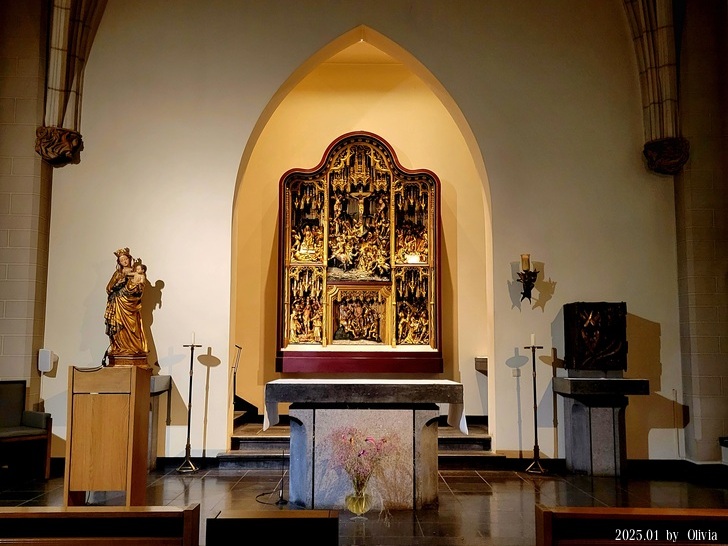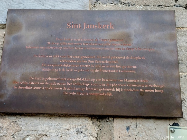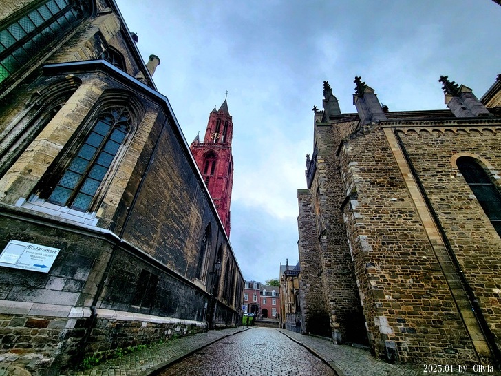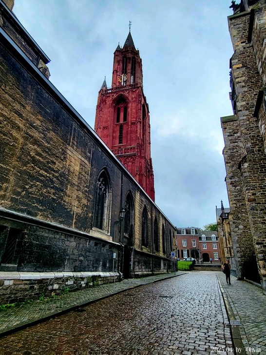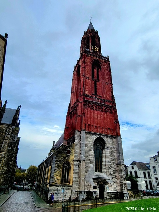 聖約翰教堂 Sint Janskerk紅色塔樓,位於聖瑟法斯教堂的隔壁, Vrijthof廣場上另一棟引人注目的宗教建築是聖揚教堂,它紅色的塔樓據說是古時用牛隻的鮮血塗漆而成。 這座哥德式的教堂建於14世紀,原本作為洗禮池與牧師教區用,17世紀中被佛德蘭語的新教徒站為使用,而變為馬斯垂克極少數新教徒的教堂。(取自網路)