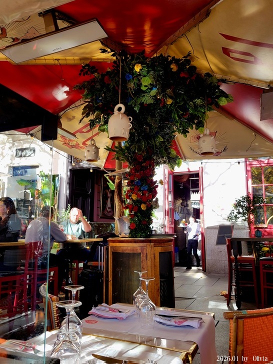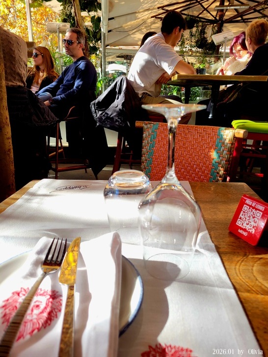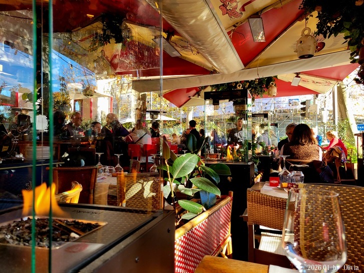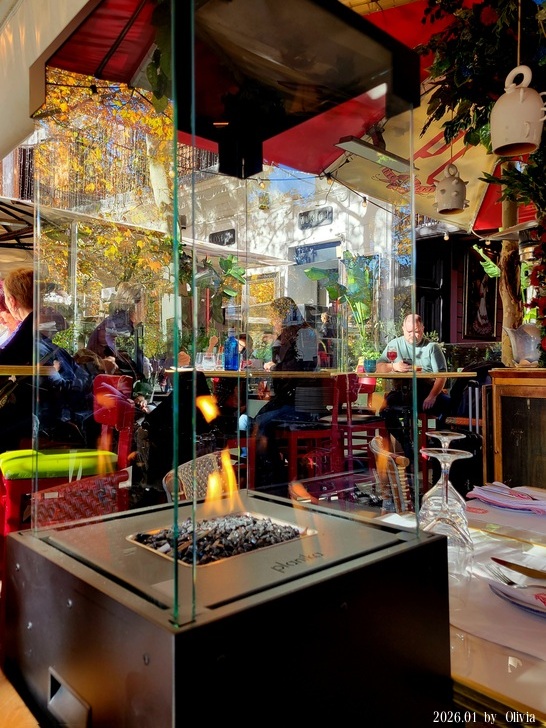 ▲洋人喜歡坐戶外,所以戶外座位大都有爐火取暖。但看穿著▼就知什麼叫<冷暖自知>