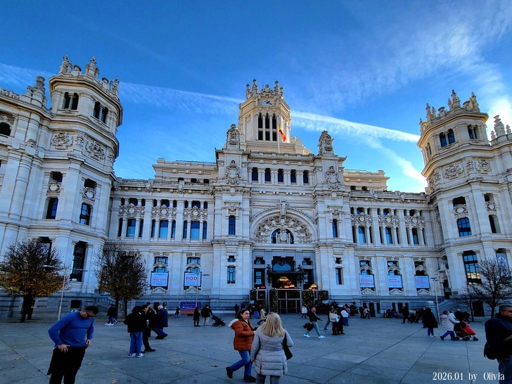▲西貝萊斯廣場的東南角,是西班牙郵電總局(Correos y Telégrafos)舊總部通訊宮(Palacio de Comunicaciones),自2007年起馬德里市長辦公室入駐。(本文棕色字皆取自維基) 西貝萊斯廣場非常漂亮,所以我對西班牙的第一印象非常好。但還是得先安頓好行李再輕裝出來亂逛較適合。