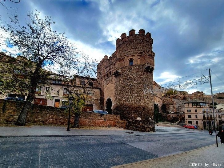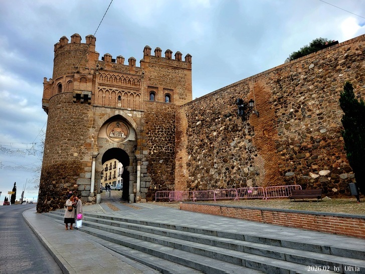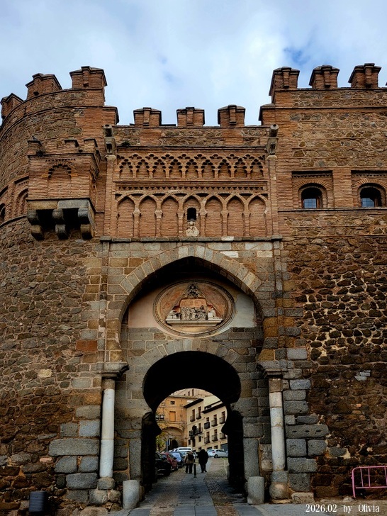 ▲▼太陽門(Puerta del Sol)是托萊多 (西班牙)的一個中世紀城門,由醫院騎士團建於14世紀晚期。 門拱上的徽章描繪托萊多的主保聖人西哥特人Ildephonsus。城門的名稱來自曾經畫在徽章兩側的太陽和月亮。(本文棕色字皆取自維基)